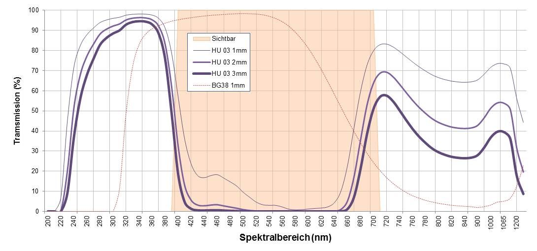 HEBO Ultraviolettfilter HU 03 (entspricht Schott UG5) in 3 Stärken |