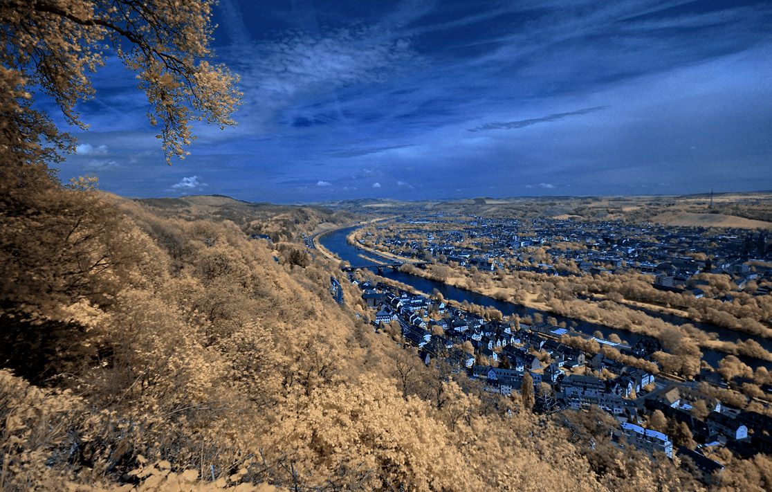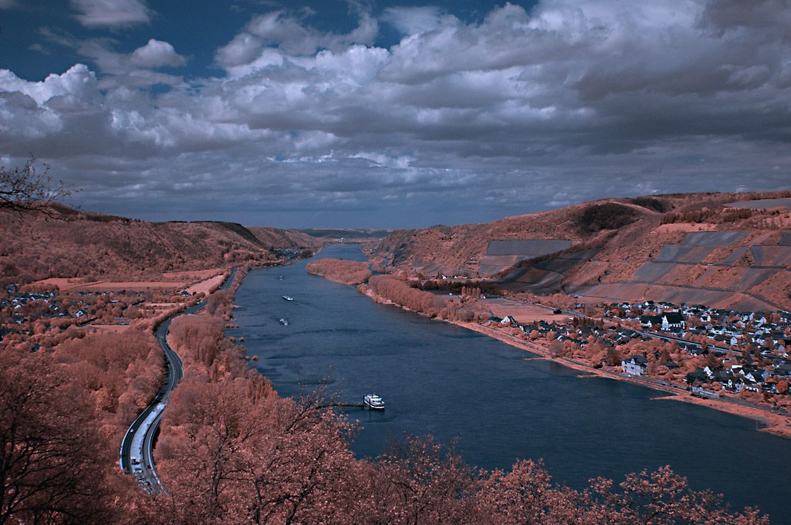 vom Krahnenberg / Andernach: Leutesdorf und Hammerstein; Hebo V02 + Orangefilter |