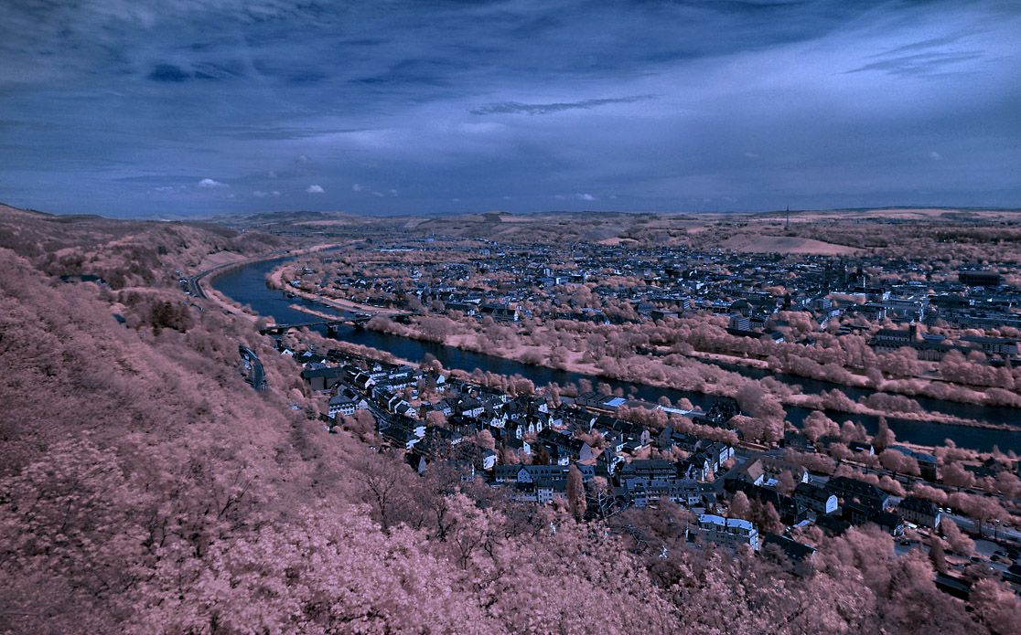 Blick von der Mariensäule auf dem nördlichen Moselufer auf Trier, einfacher Kanaltausch |